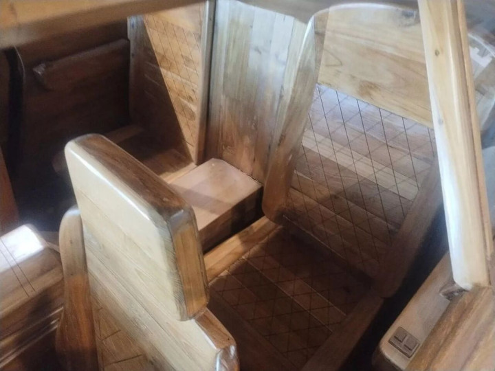 这并不是一个简单的“木雕模型”。根据介绍,它由海洋级柚木和胶合板拼装而成,总共耗费超过3000个小时,使用了数以千计的木质部件,搭建在两条木梁上作为底盘。可以说,这是一件需要耐心与工艺双重支撑的艺术品。