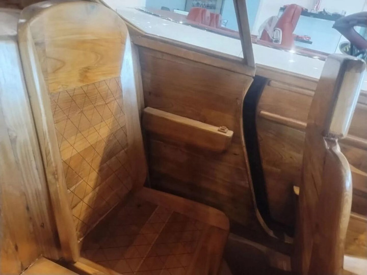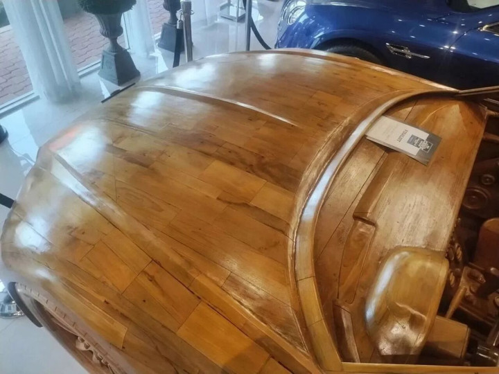 这台木制宾利目前陈列在美国佛罗里达博卡拉顿的Autosport Group展厅,和几辆真正的宾利二手豪车摆放在一起,形成了一种颇为戏剧性的反差。展厅方面决定将它出售,虽然车身部分拼接处出现了一些裂痕,车内也能看到轻微的使用痕迹,但整体依旧堪称独特的收藏品。